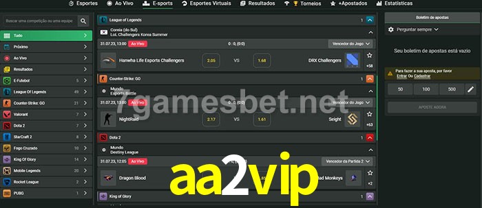 O aa2vip oferece uma grande seleção de opções de apostas em e-sports com probabilidades competitivas